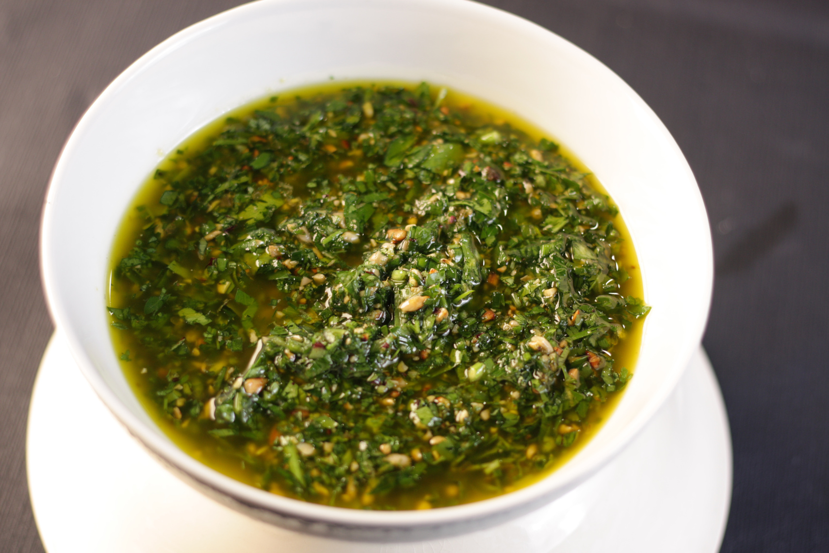 Ta peanøtter sammen med evt andre nøtter. Bak de gjerne i en ovn. Ha det over i en blender. Tilsett kokosmelk, koriander, chili, soyasaus (pass på saltmengden), østerssaus og fersk ingefær. Kjør den til passende flytende konsistens. Smak til med sitrus og salt.
