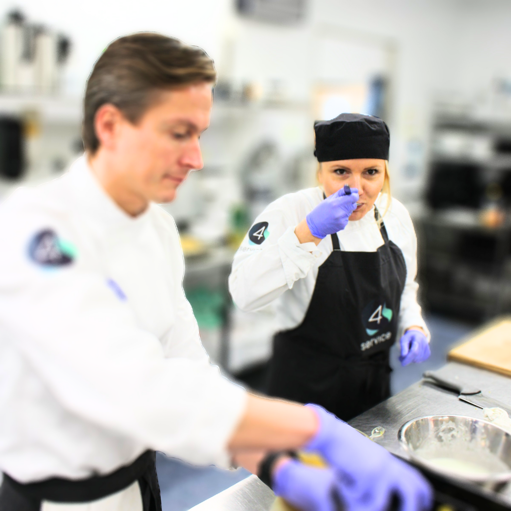 Jan Taarneby, som er redaktøren for dette heftet, har laget flere kart over salatens (og dressingens) verden, som viser hvor mange retninger man kan ta (se side 9 og 14). Og dyktige 4Service-kokker fra Kantine og Camps, sammen med kjøkkensjef Hanne Rutgerson fra Kastellet og Calle Lillemägi fra Engrosfrukt bidrar med et utall av konkrete eksempler på hvordan man kan og bør variere tilbudet på salatsiden. Da er det lett å få venner med salat, og ikke minst mange lykkelige gjester.